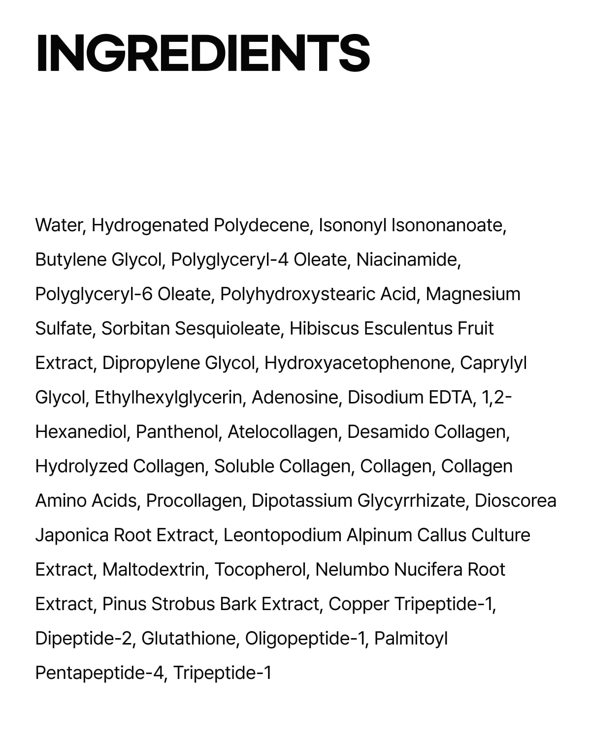 - Dual collagen and mucin care: Seven types of collagen and three types of mucin work together to reduce wrinkles, lift sagging skin, and restore firmness for a youthful look